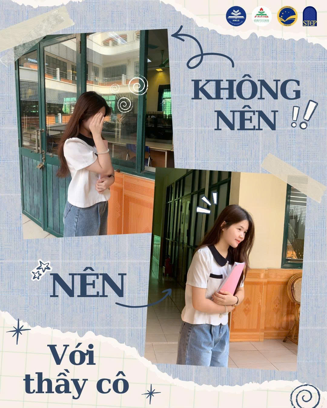 Với cái tên “Sư phạm văn minh - Chuyện của chúng mình”, bộ ảnh khắc họa những hành vi nên làm và không nên làm trong môi trường học đường – từ lời nói, cách ứng xử, đến hành động thường ngày. Qua đó, chúng mình tin rằng chính mỗi hành vi nhỏ bé của sinh viên chính là mảnh ghép quan trọng tạo nên một môi trường sư phạm văn minh, thân thiện và chuẩn mực.