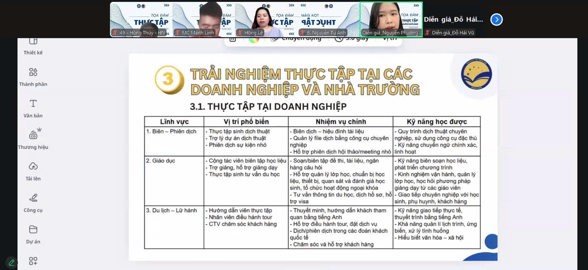 Sáng ngày 30/9/2025, Bộ môn Ngôn ngữ Anh đã tổ chức thành công buổi Tọa đàm Hướng dẫn thực tập cho sinh viên Ngôn ngữ Anh năm 2025 – sự kiện nhằm đồng hành cùng sinh viên trong quá trình trang bị kiến thức, kỹ năng và tâm thế sẵn sàng cho kỳ thực tập sắp tới.