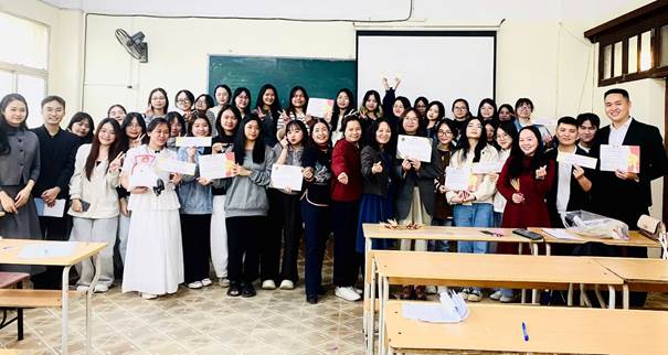 Chiều ngày 29/11 vừa qua, từ 13h30 đến 16h30, không khí thi đấu sôi nổi đã bao trùm phòng 508 nhà D3 (tòa nhà V, HNUE), nơi bộ môn Văn hoá – Văn minh Anh – Mỹ, Khoa Tiếng Anh đã tổ chức thành công chương trình "On-the-Stage Day". Sự kiện này được thiết kế như một công cụ đặc biệt, giúp sinh viên bốn lớp K72A1, K72A2, K72A3, K72A4 chủ động ôn tập và hệ thống hóa kiến thức cho môn Văn học Anh – Mỹ thông qua các hoạt động trải nghiệm thú vị và đặc trưng cho môn học.